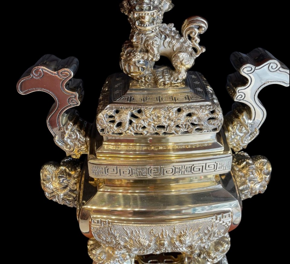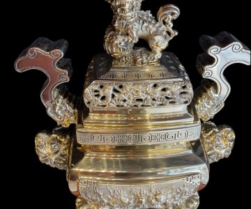 Đỉnh Vuông Đồng Vàng Thờ Cúng , Mẫu Đỉnh Đồng Vuông Đẹp Cao Cấp