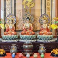 Combo Tượng Tam Thế Phật Đá thạch anh vẽ gấm hiệu ứng đồng