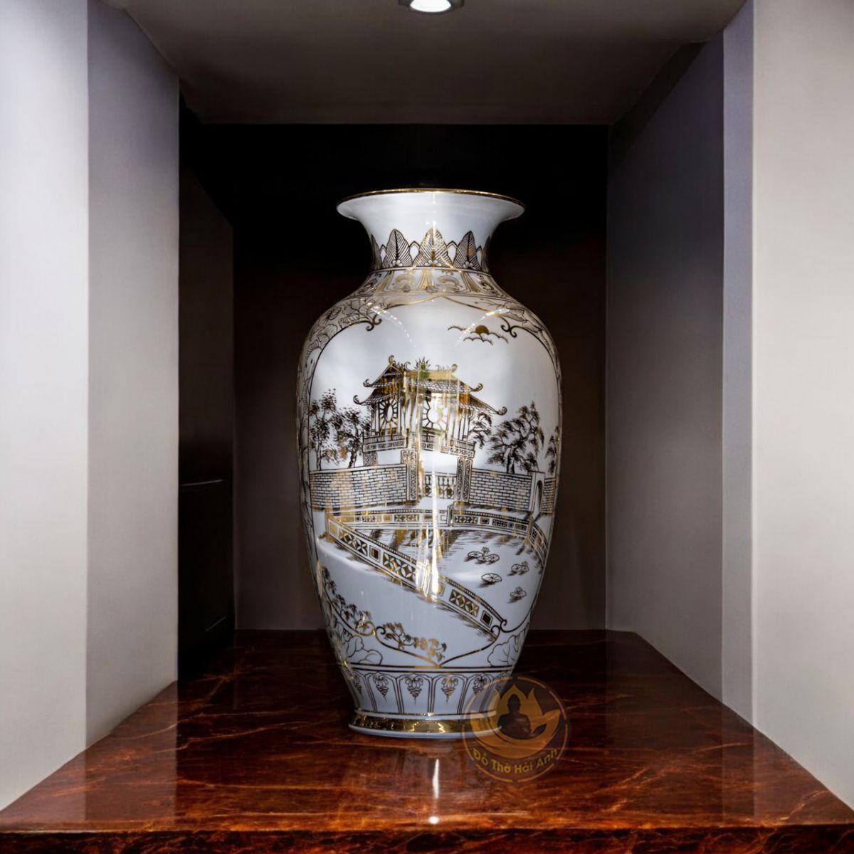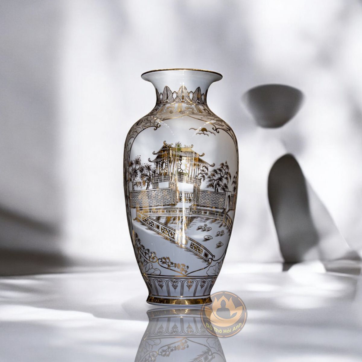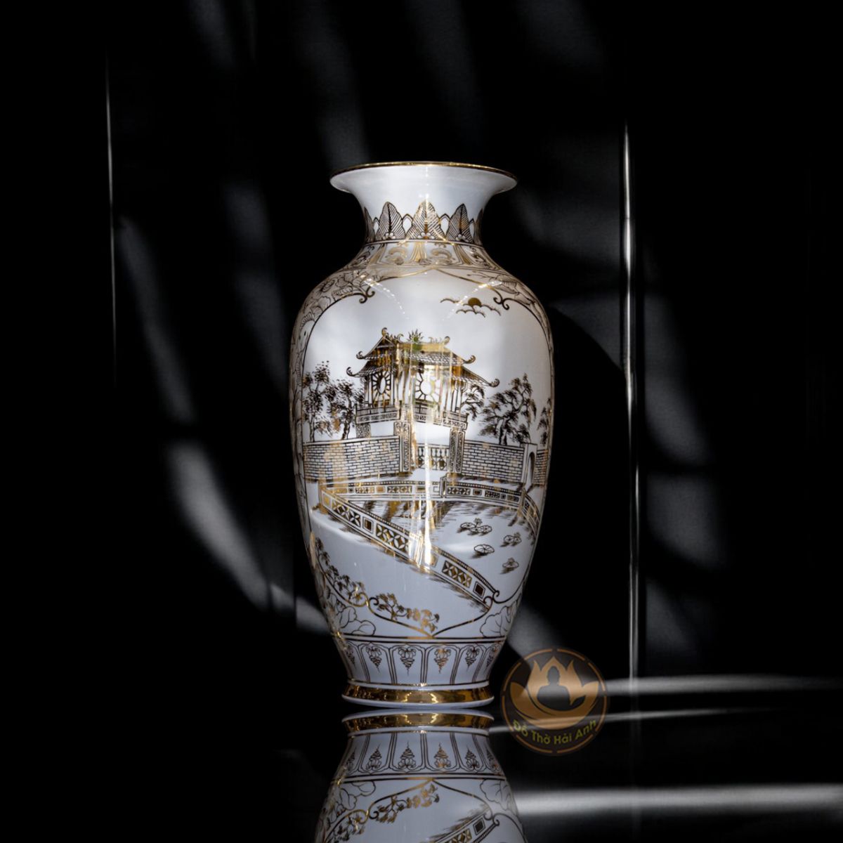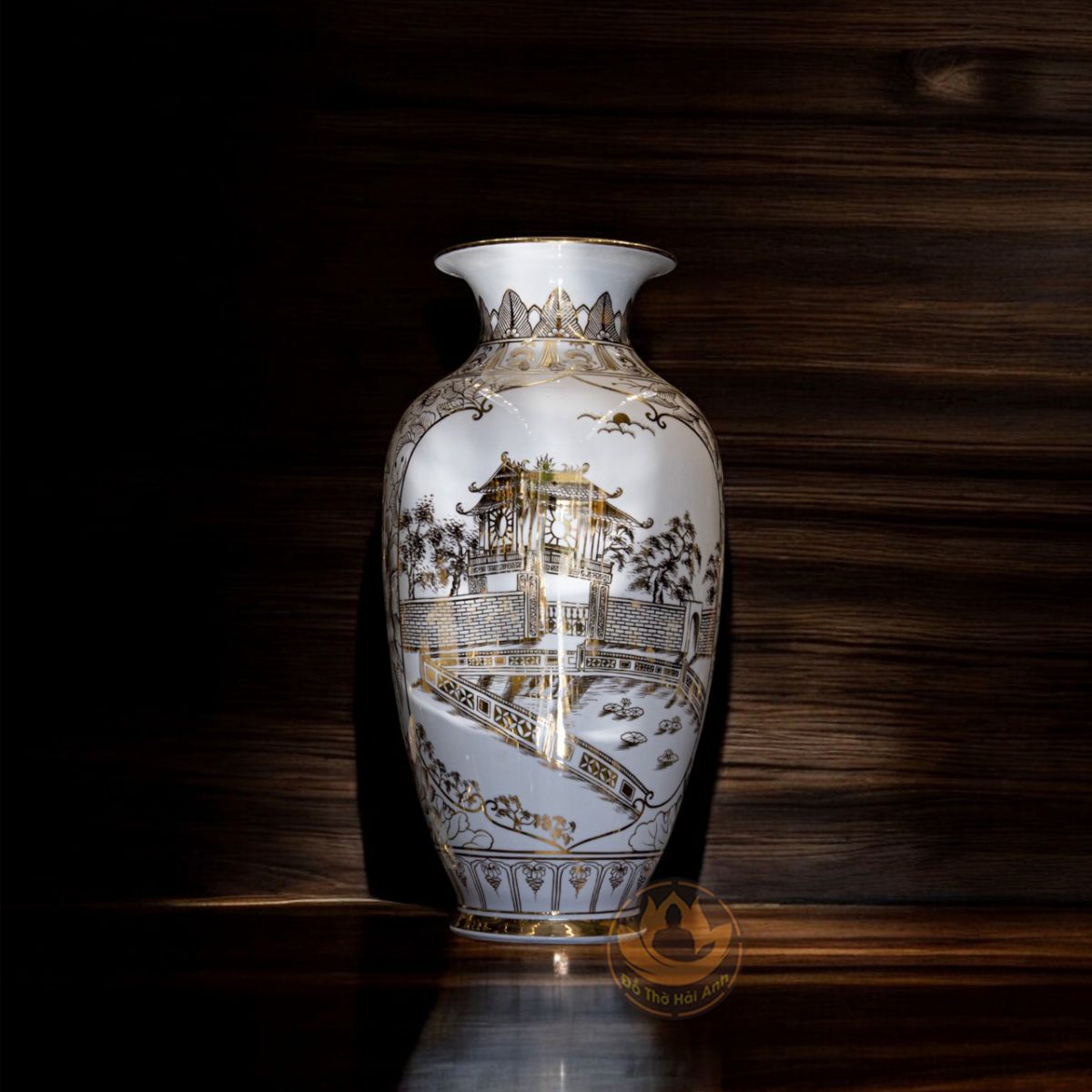 Bình Gốm Hút Lộc Bạch Ngọc Vẽ Tay Vàng Kim – Biểu Tượng Hà Nội