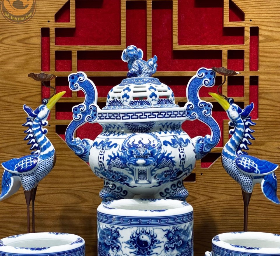 Bộ Đồ Thờ Trường Phúc Men Lam – Vẻ Đẹp Truyền Thống, Phúc Lộc Vẹn Toàn
