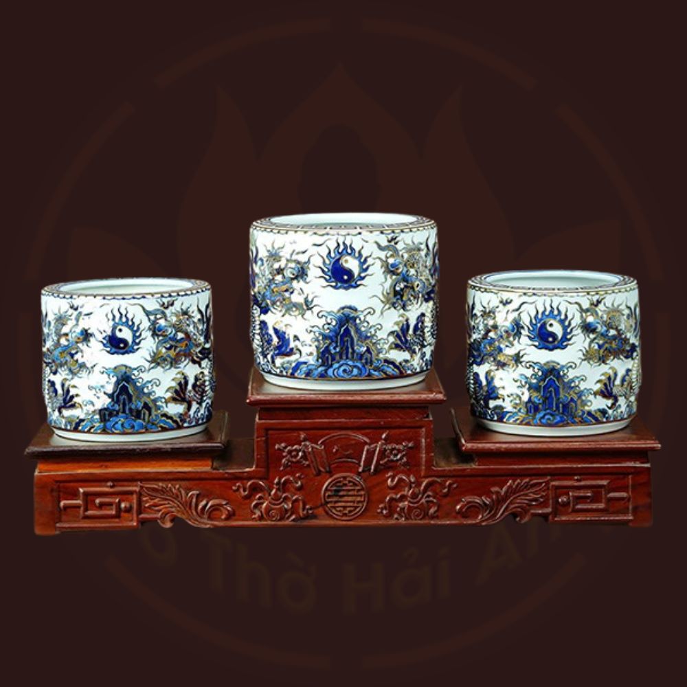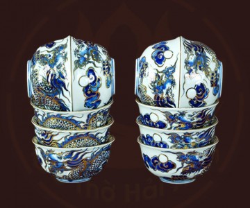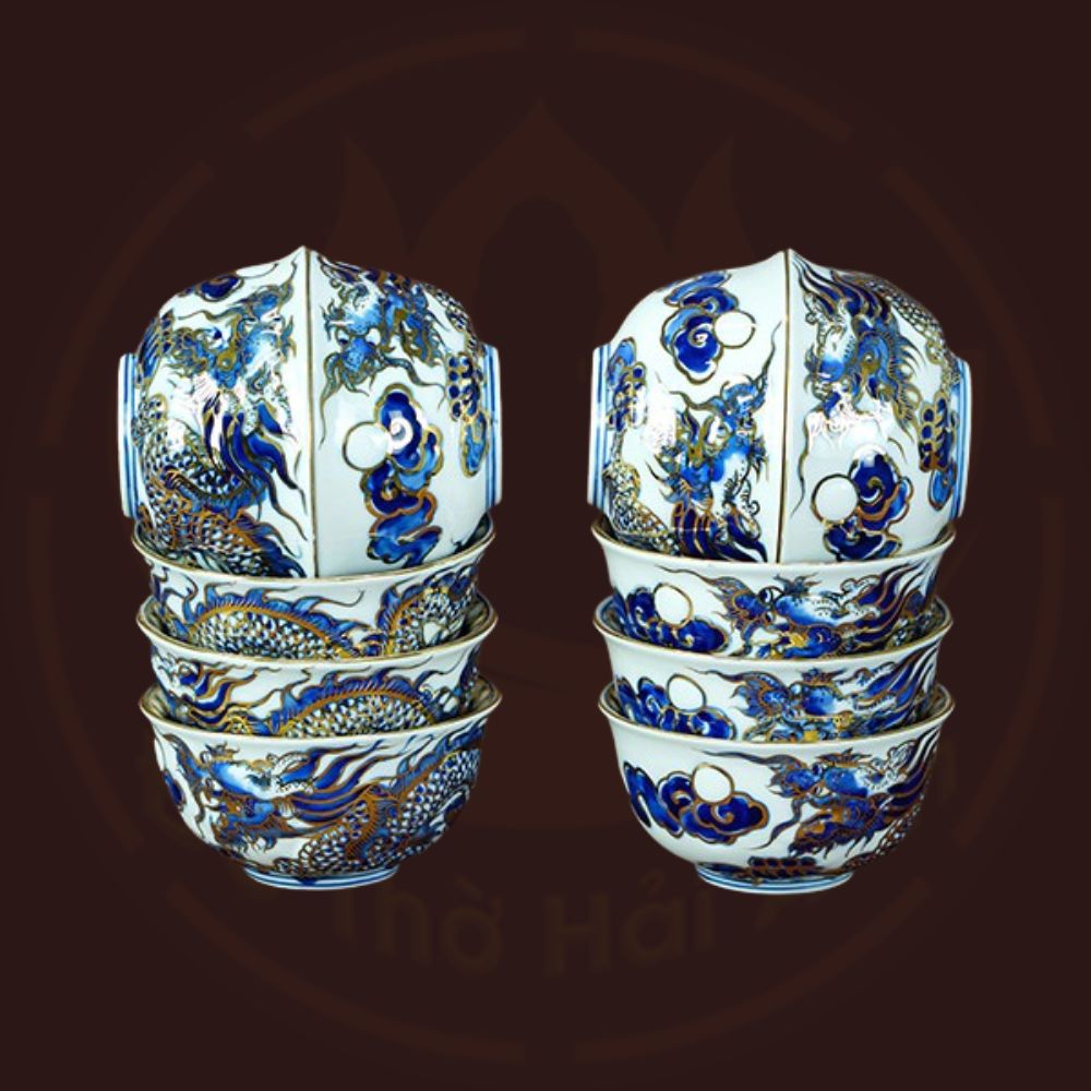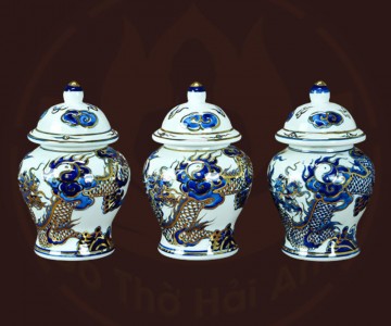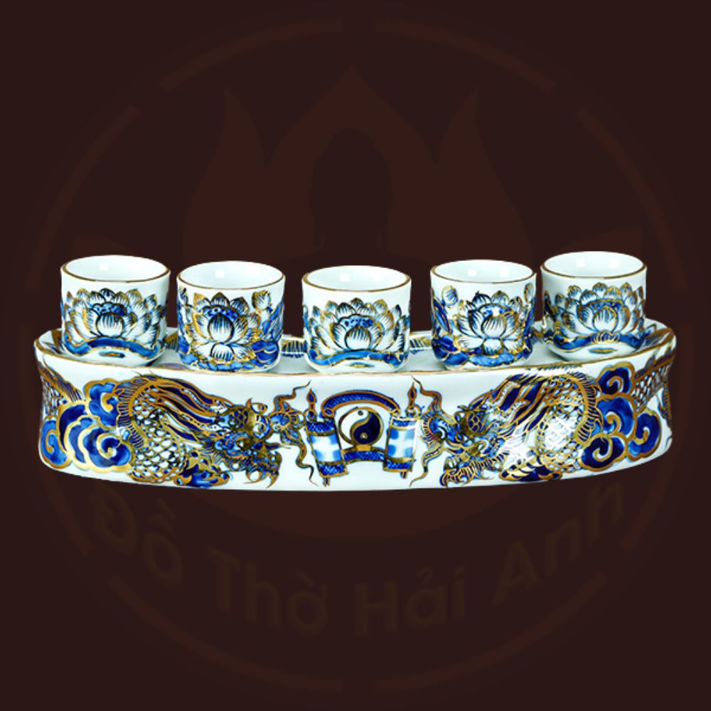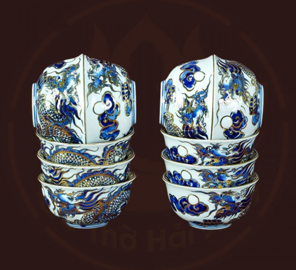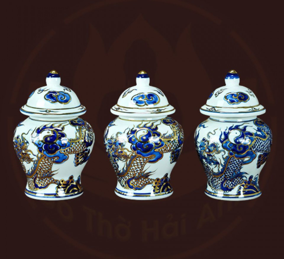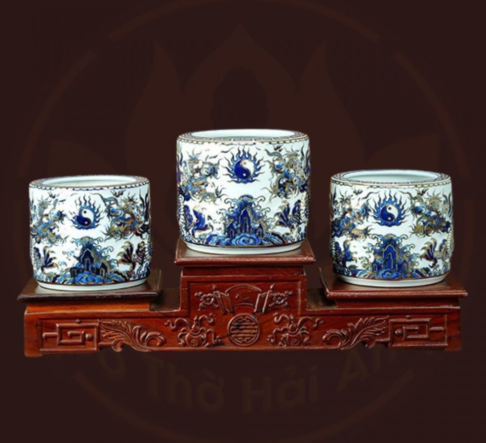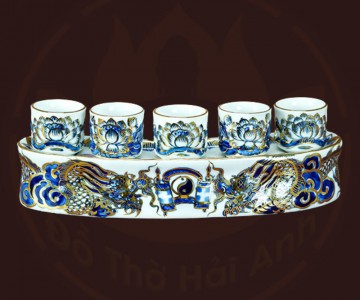 Bộ đồ thờ rồng men lam nổi vẽ vàng kim