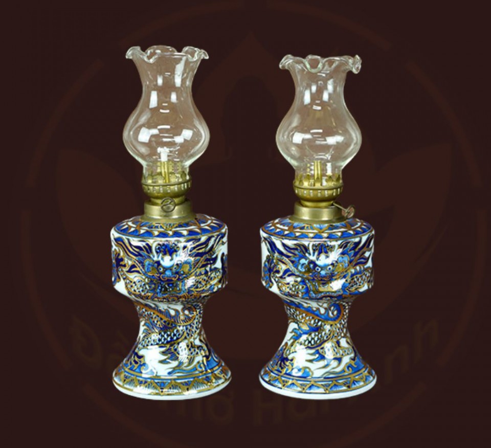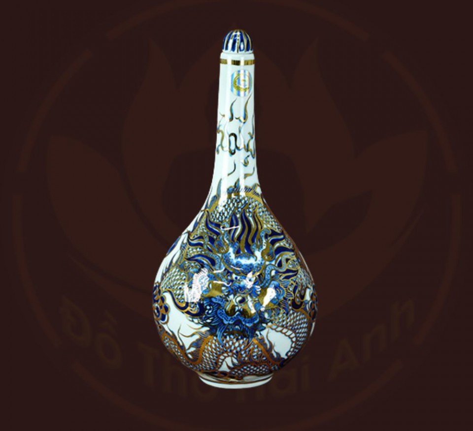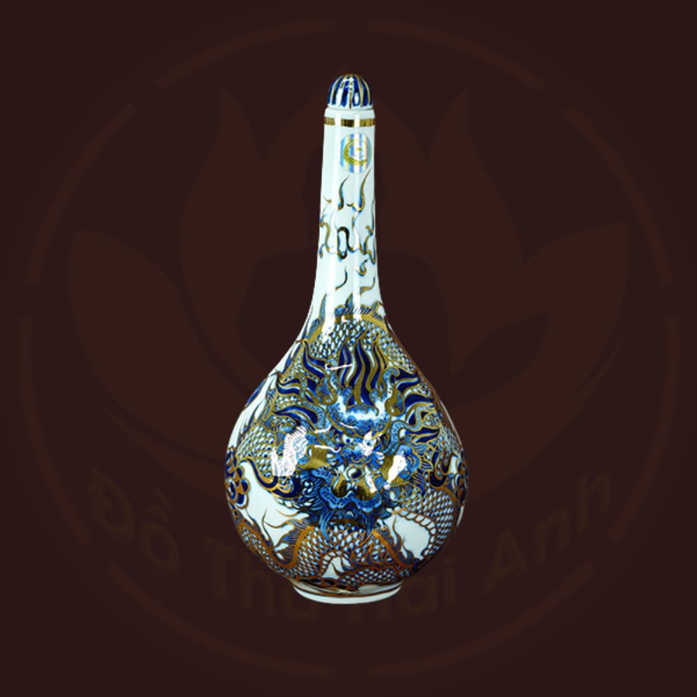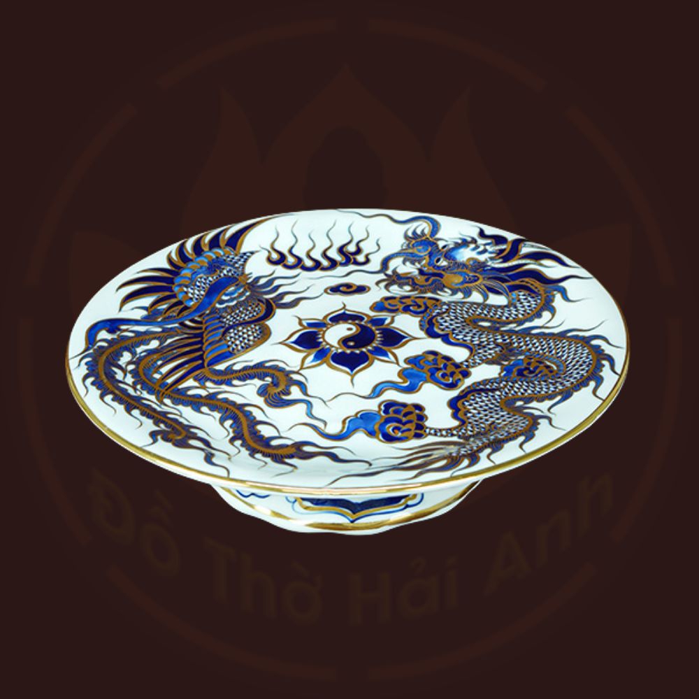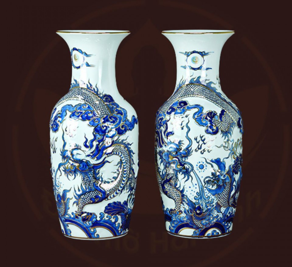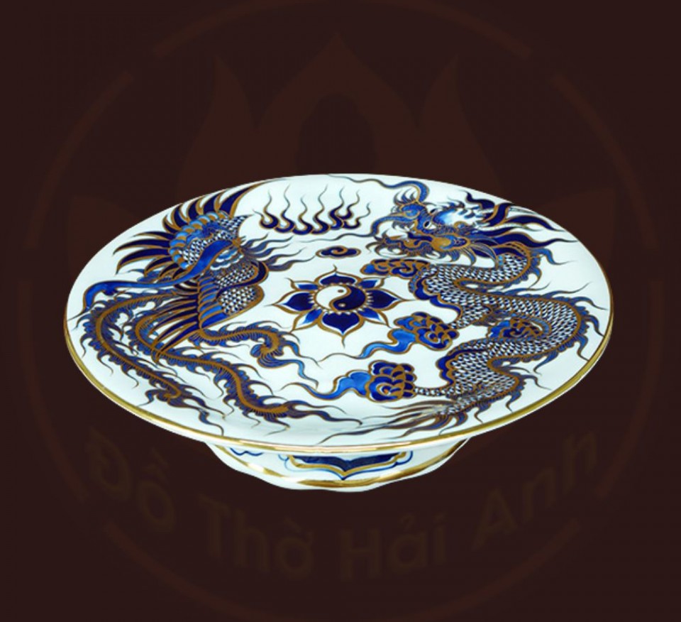 Bộ đồ thờ rồng men lam nổi vẽ vàng kim