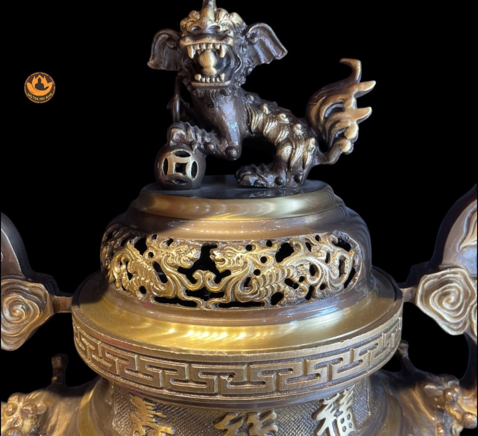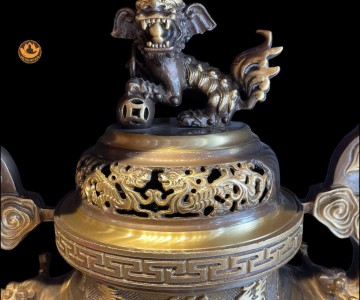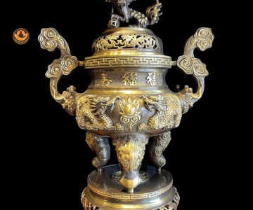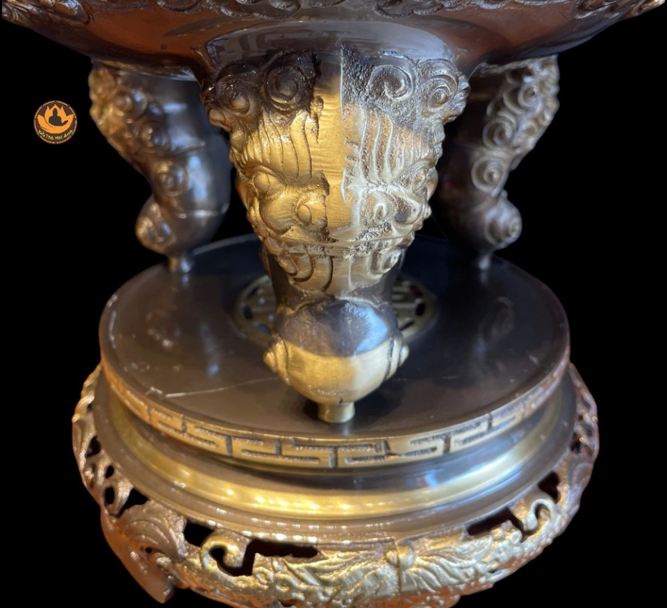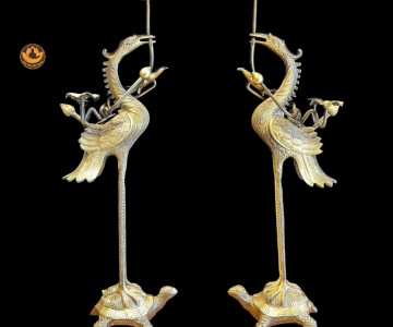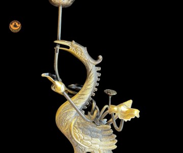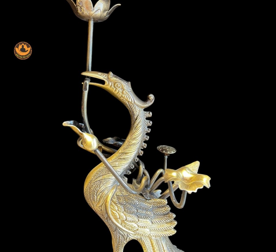 Bộ Ngũ Sự Đồng Cạo 2 Công Nghệ Màu Giả Cổ ,Đỉnh Thờ, Hạc, Chân Nến Đẹp Cao Cấp