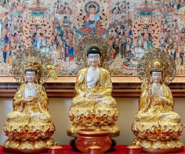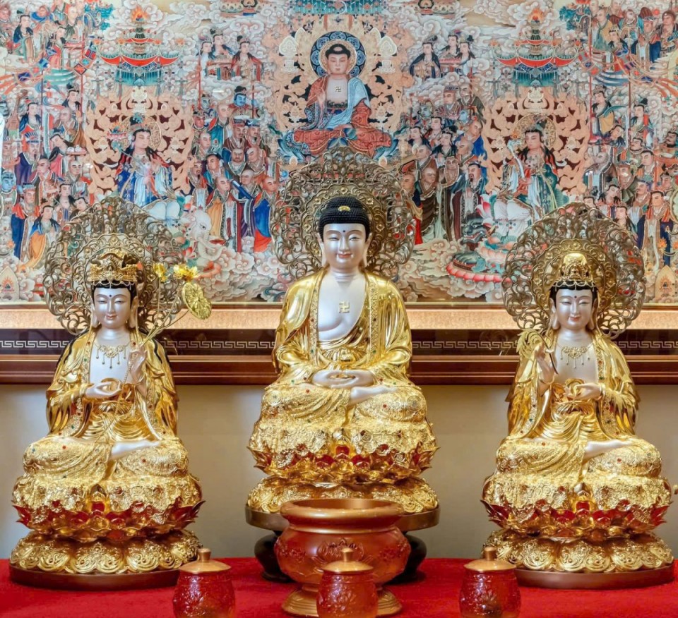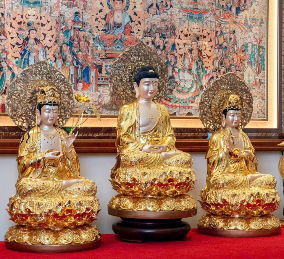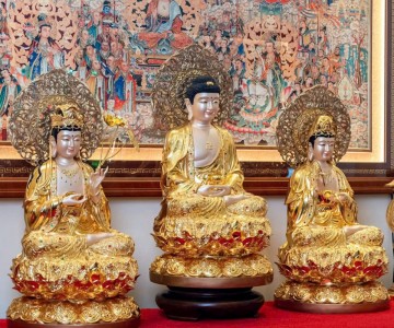 Combo Tượng Tam Thế Phật Đá thạch anh Dát vàng