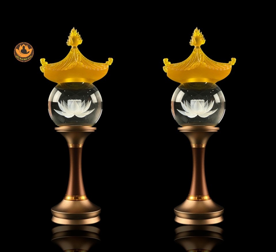 Đèn Cầu mái chùa lưu ly thân hợp kim đồng