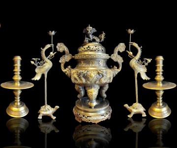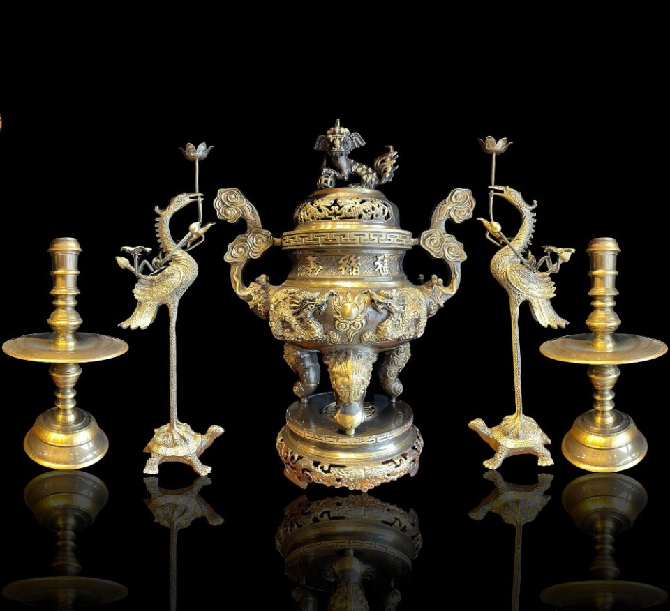 hân Nến Đồng Cạo Công Nghệ Màu Giả Cổ , Bộ 2 Chiếc Trang Trí Bàn Thờ