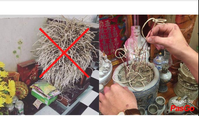 Không đổ tro bừa bãi: Chân nhang và tro cũ rút ra là vật linh thiêng, không được đổ thẳng vào thùng rác ô uế. Phải hóa (đốt) hoặc rải ra nơi đất sạch.