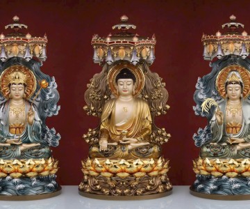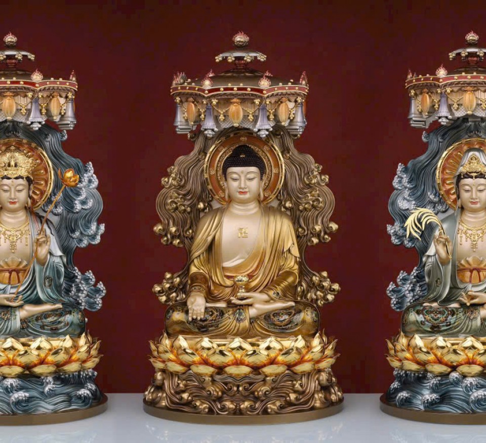 Tôn tượng Tam Thế Phật Đồng cao cấp tọa Đài Sen
