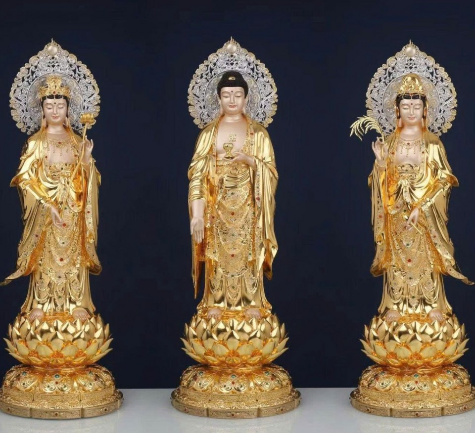 Tôn Tượng Tây Phương Tam Thánh Đồng Men Cổ cao cấp S3